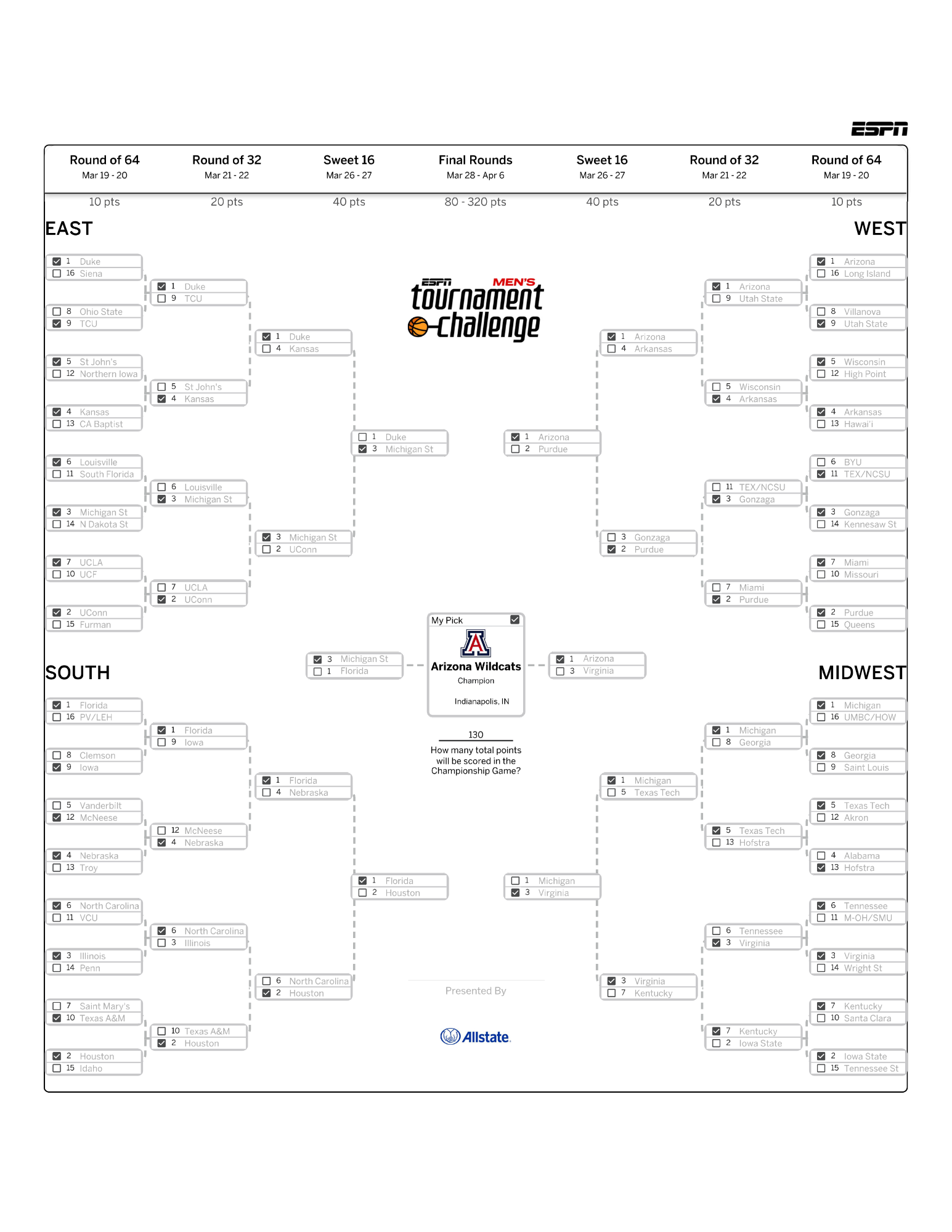 Jack’s NCAA Men’s Basketball Tournament Bracket